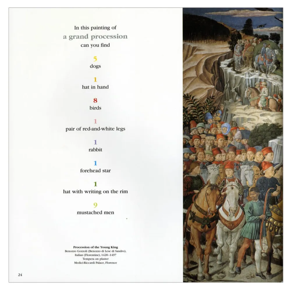 Can You Find It? and Can You Find It, Too? are search-and-discover books that invite readers of all ages to take a close look at works of art by masters such as Bruegel, Canaletto, Tiepolo, and many others. For the 19 paintings reproduced in Can You Find It?, a list of intriguing details hidden within each work sets readers off on a journey across the centuries and around the world. All the fun of this book is extended in Can You Find It, Too?.